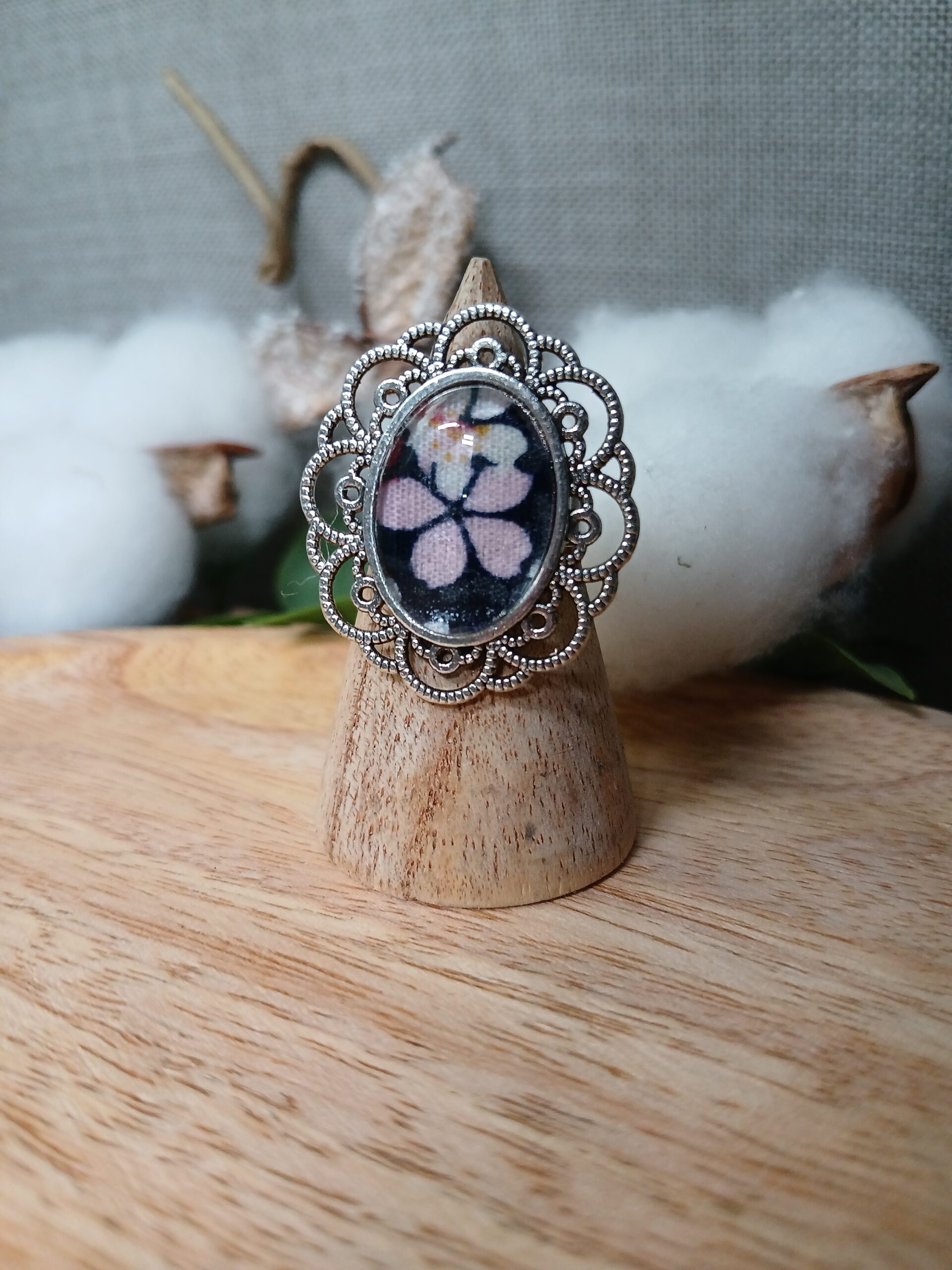 Bague Cabochon en Acier Inoxydable & Tissu – Fait Main
