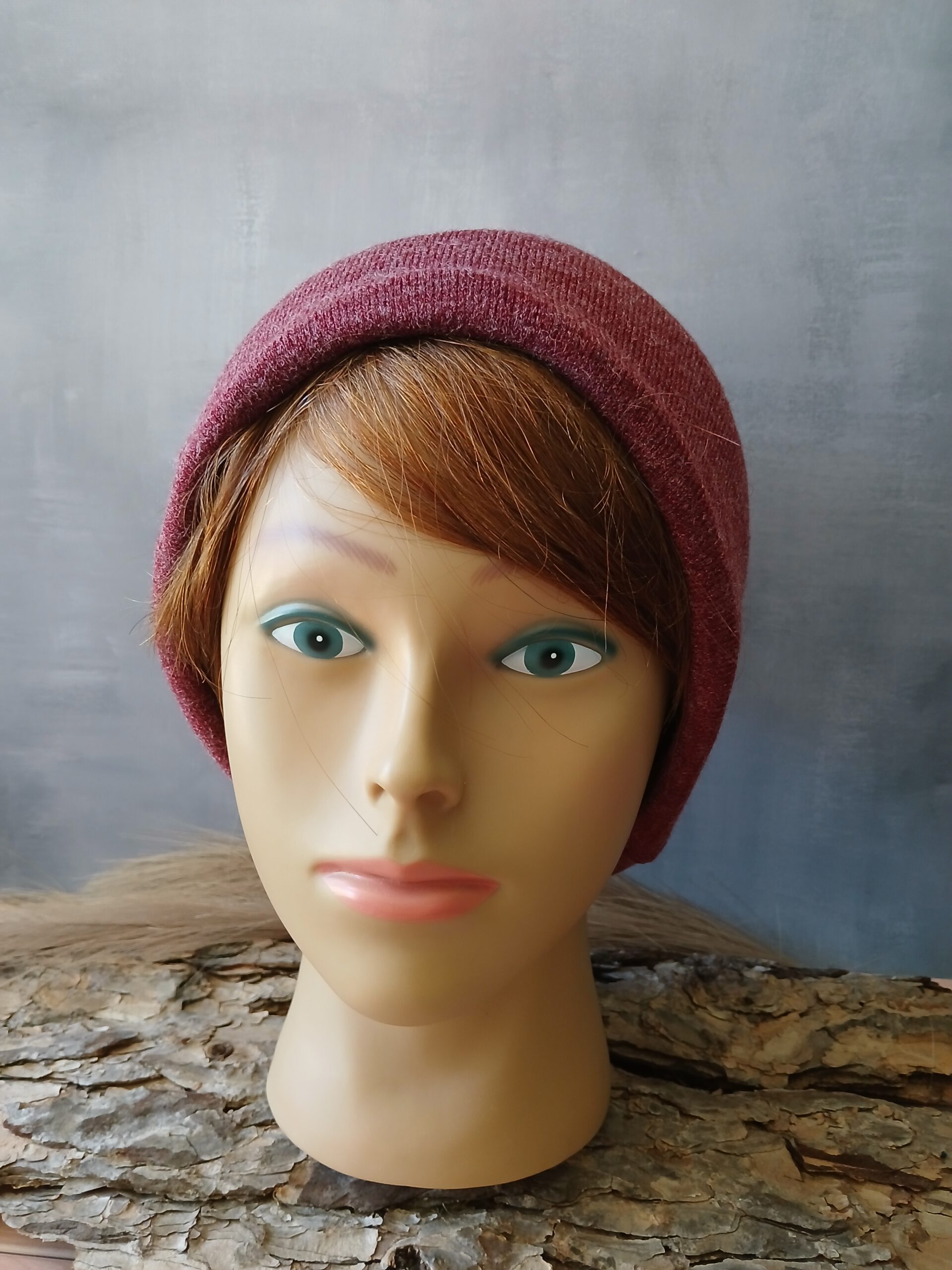 Bonnet femme 3 en 1, en maille, couleur bordeau