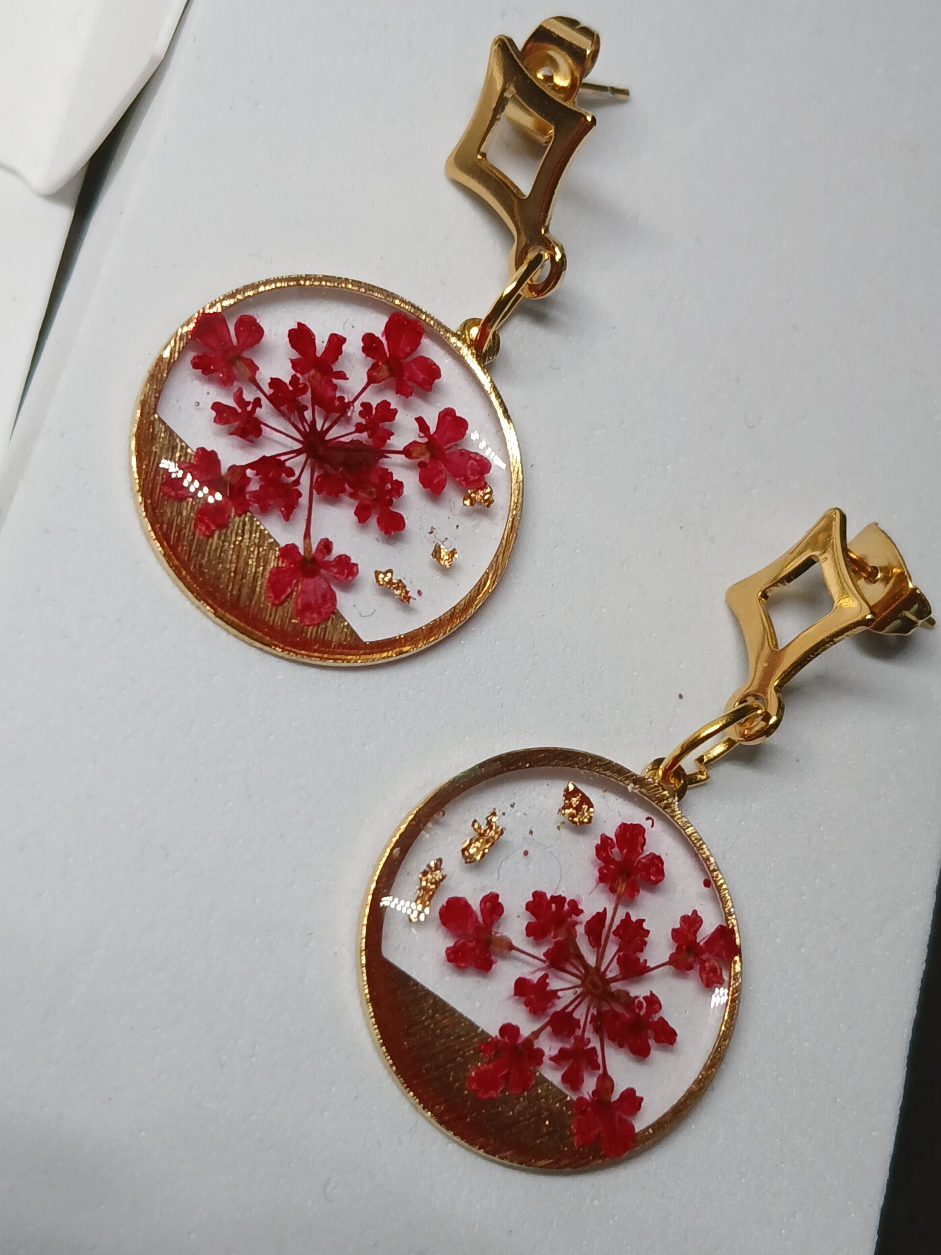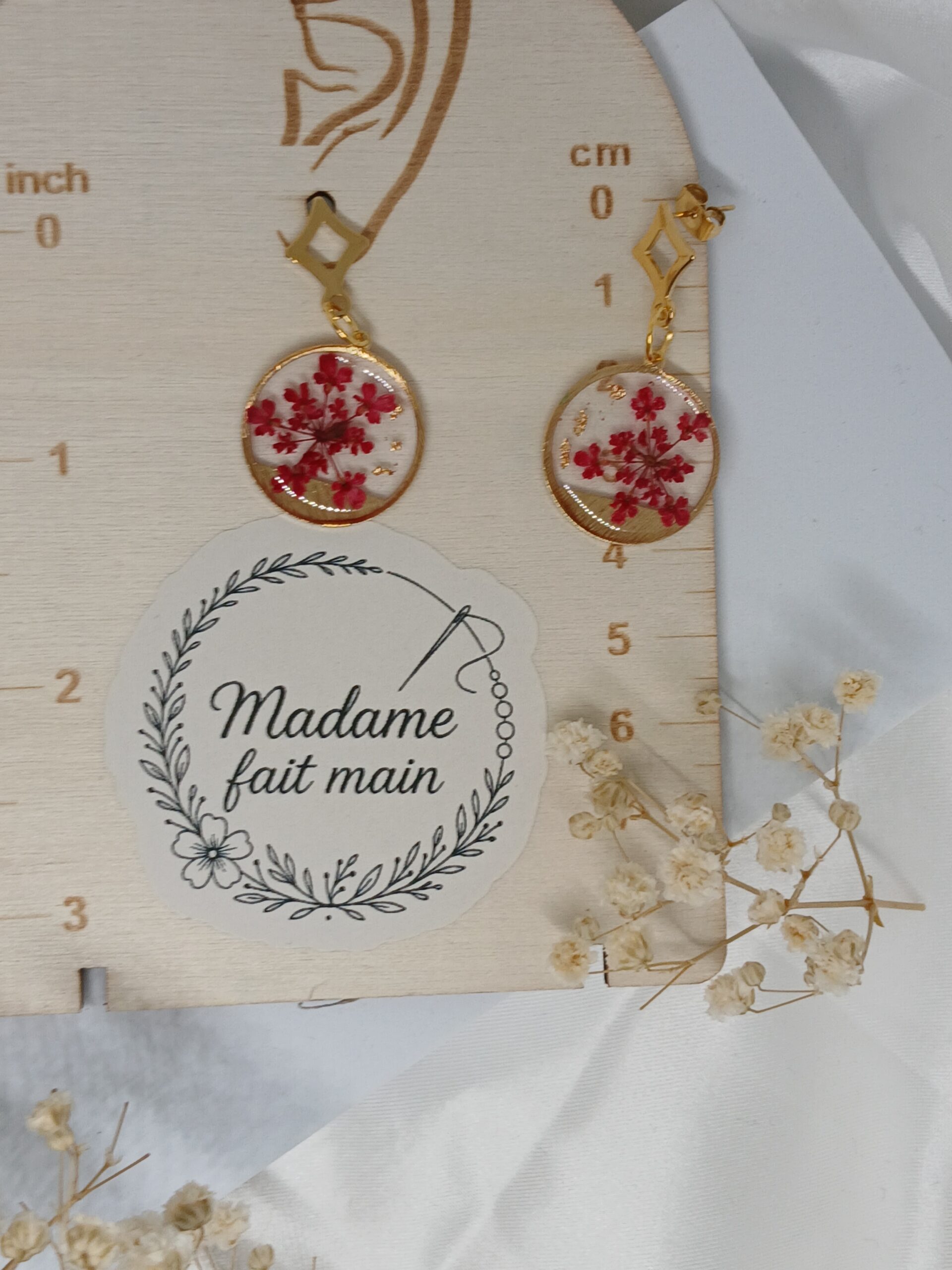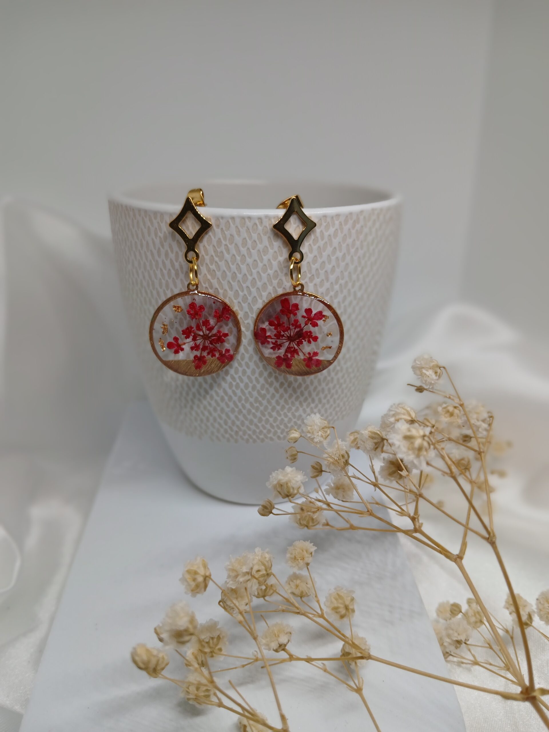 Boucles d’oreilles fleurs de carotte sauvage rouge