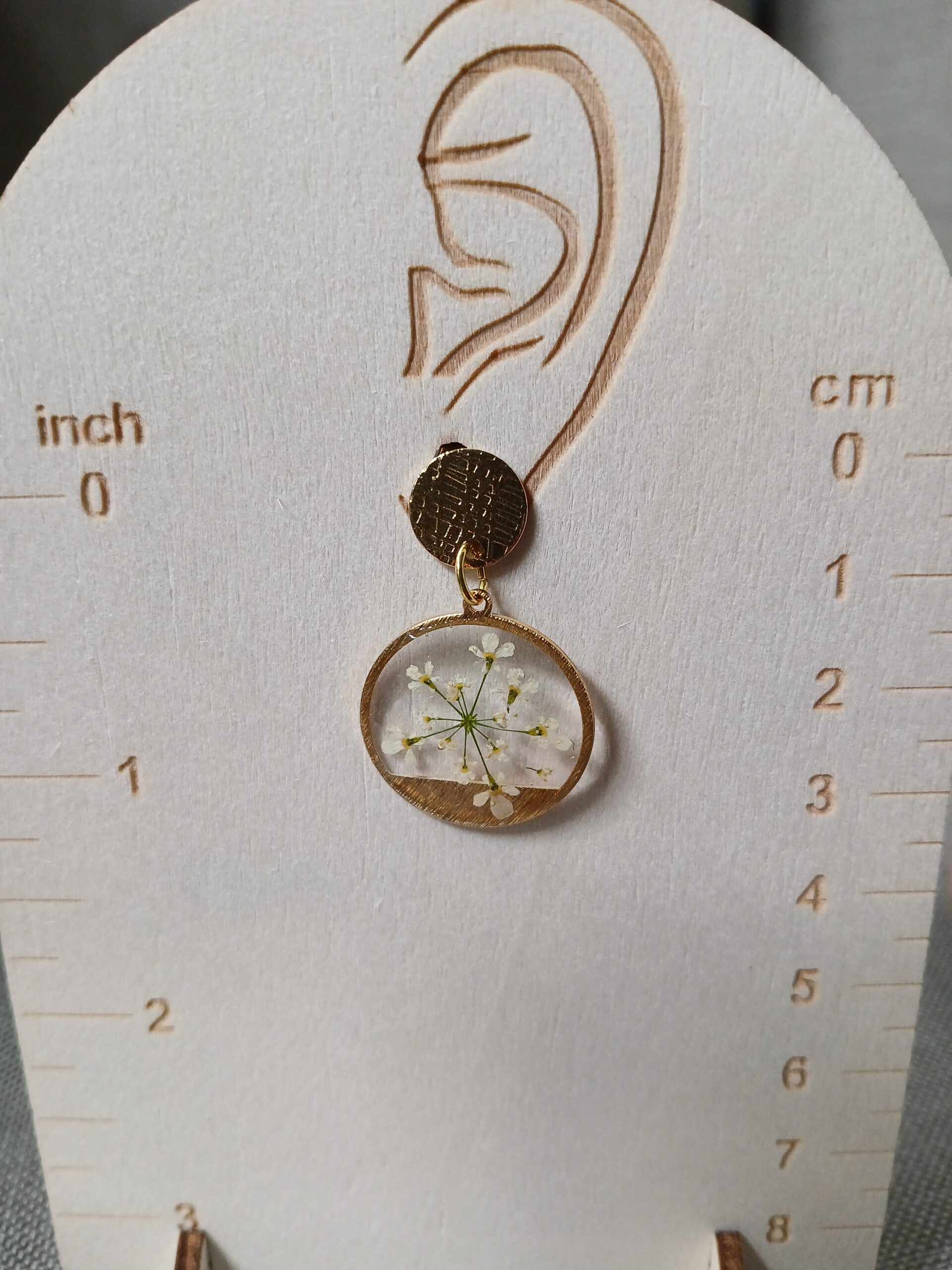 Boucles d’oreilles fleurs de carotte sauvage, forme ronde.