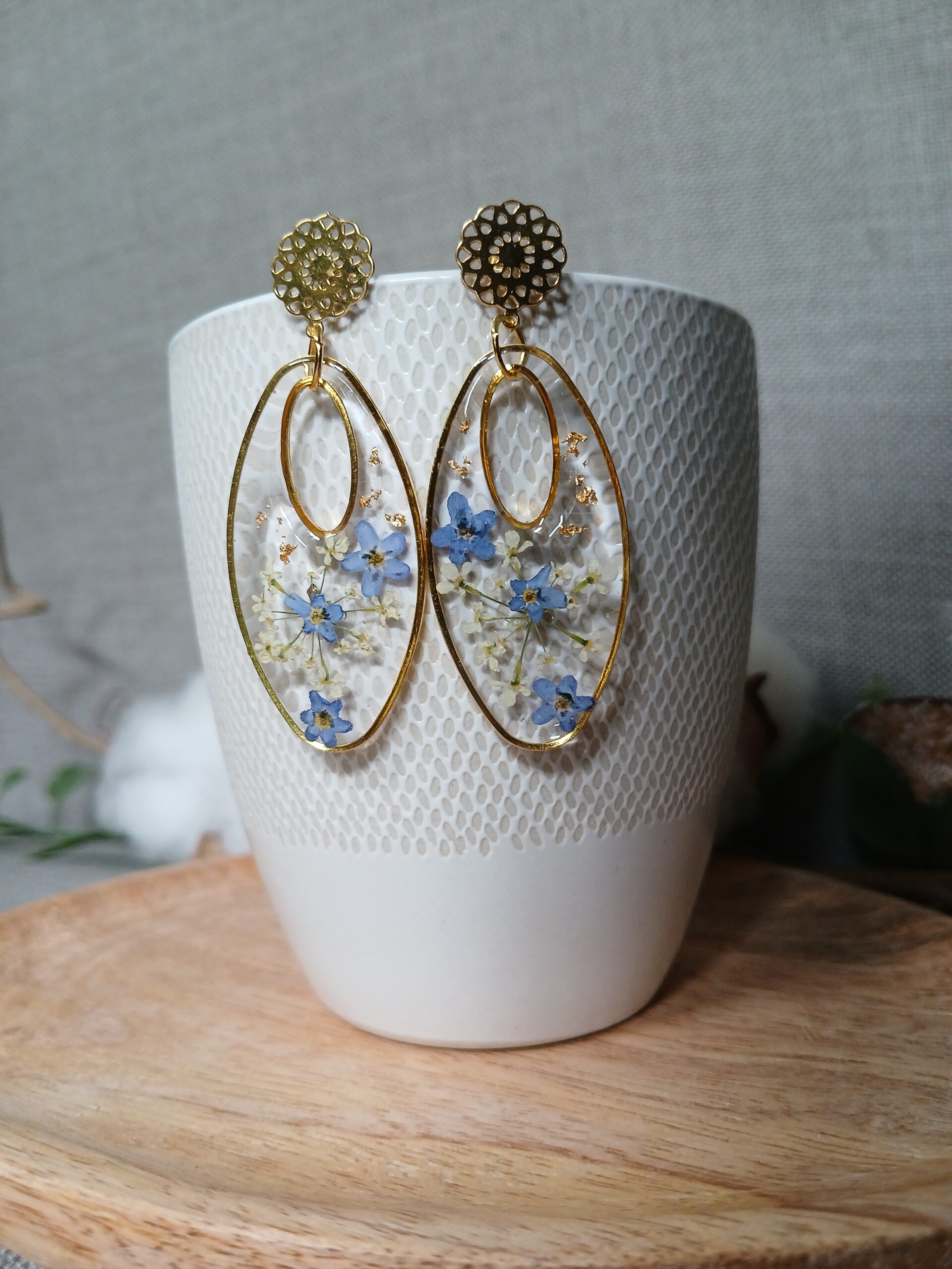 Boucles d’oreilles myosotis et fleurs de carotte sauvage