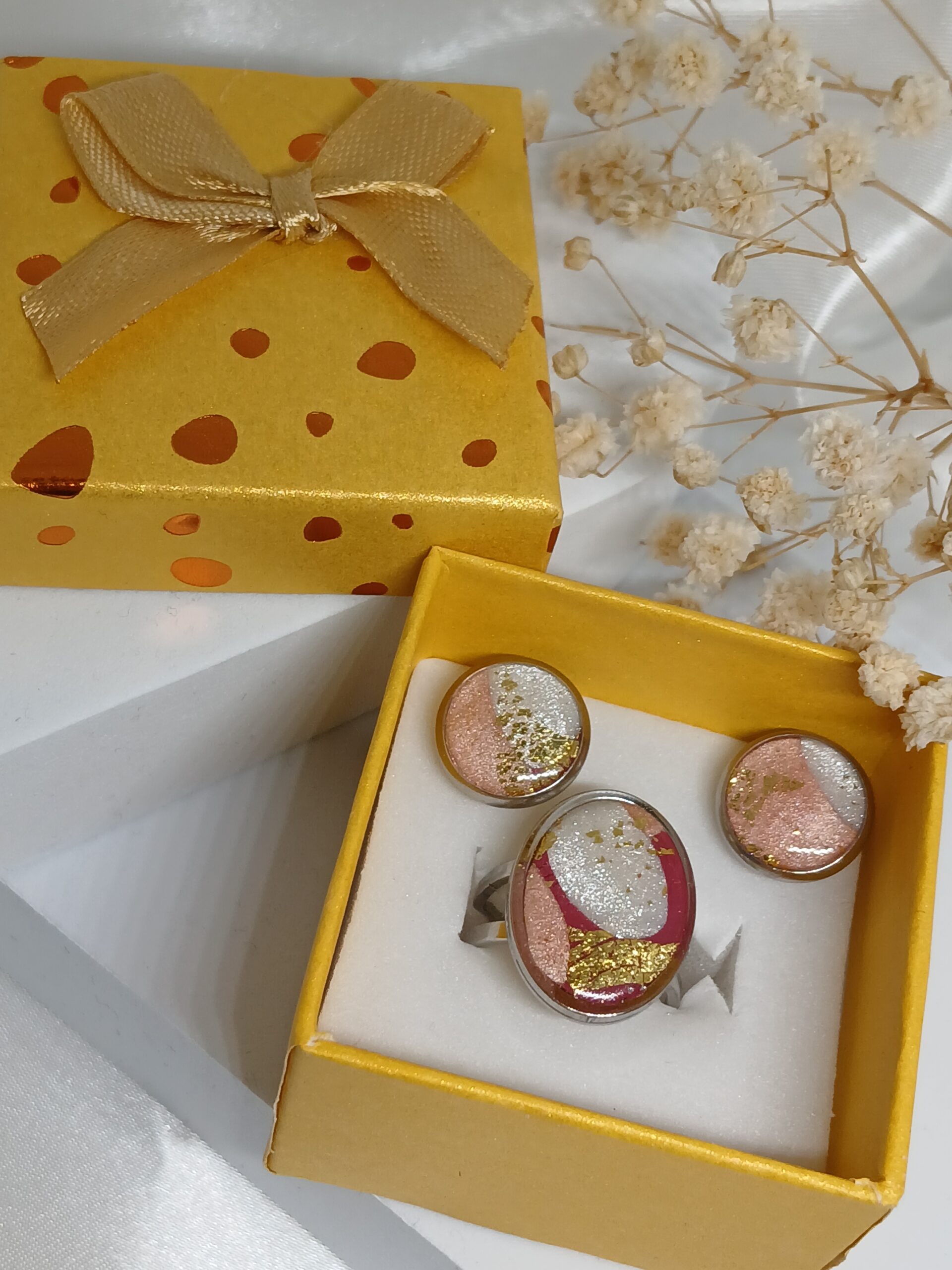 Offrez un cadeau aussi original que raffiné grâce à ce coffret de bijoux artisanaux pour femme, entièrement réalisés à la main. Chaque pièce est unique, travaillée avec soin en pâte polymère et associée à des éléments en acier inoxydable, pour un rendu élégant, durable et hypoallergénique.