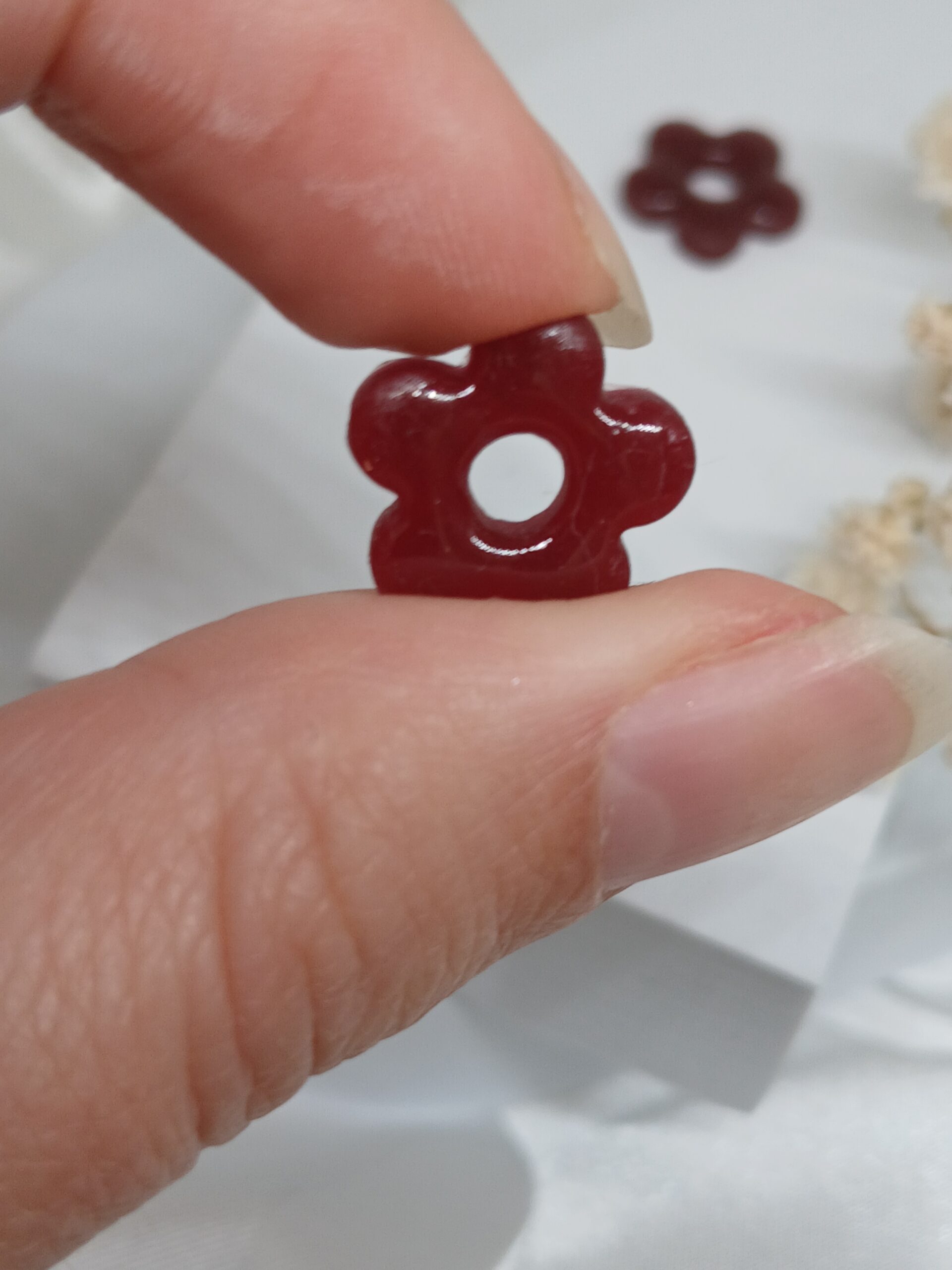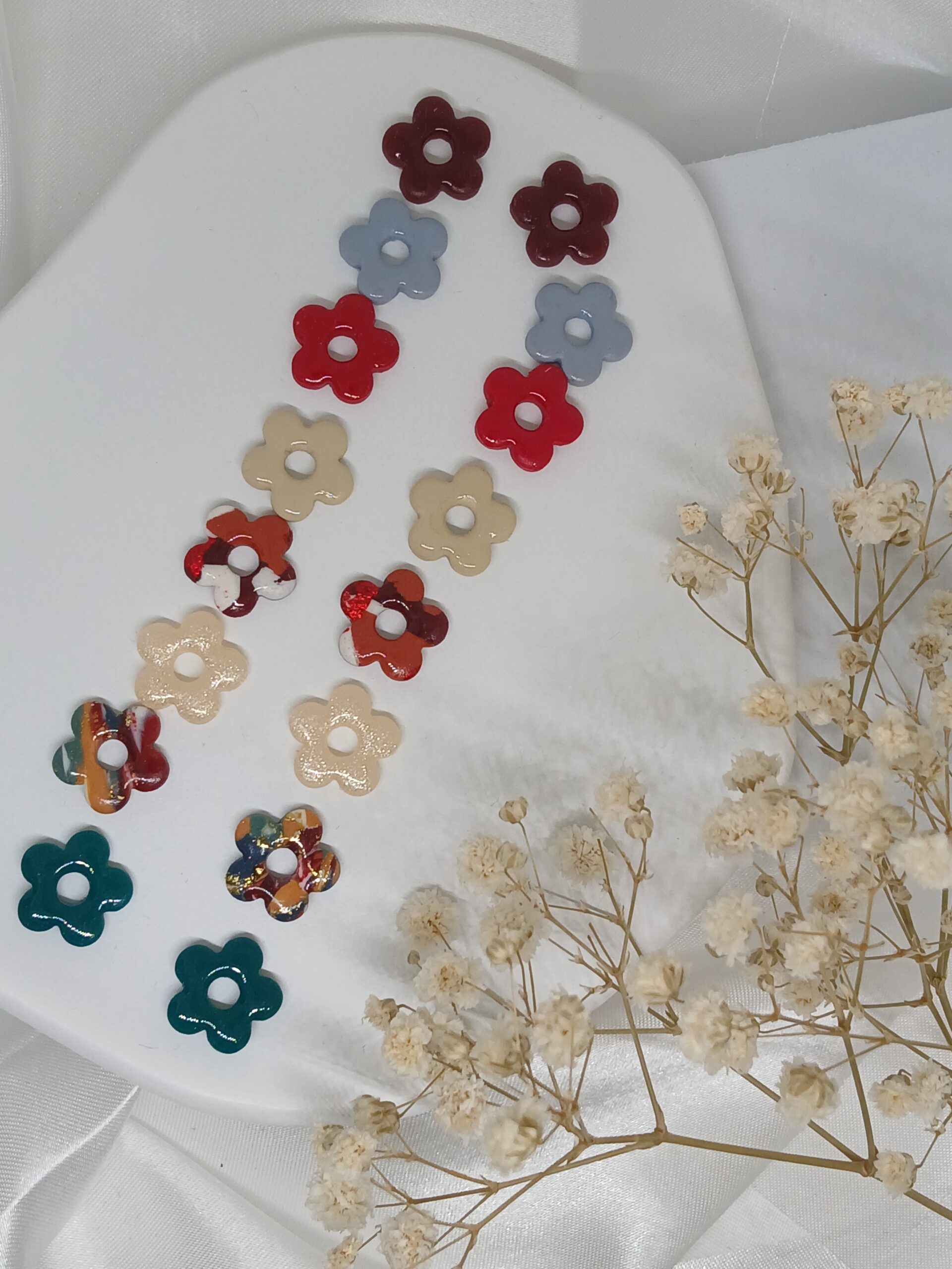 Pampilles interchangeables en pâte polymère pour créoles 14 mm (anneaux, non fournis)/ paire de mini fleurs