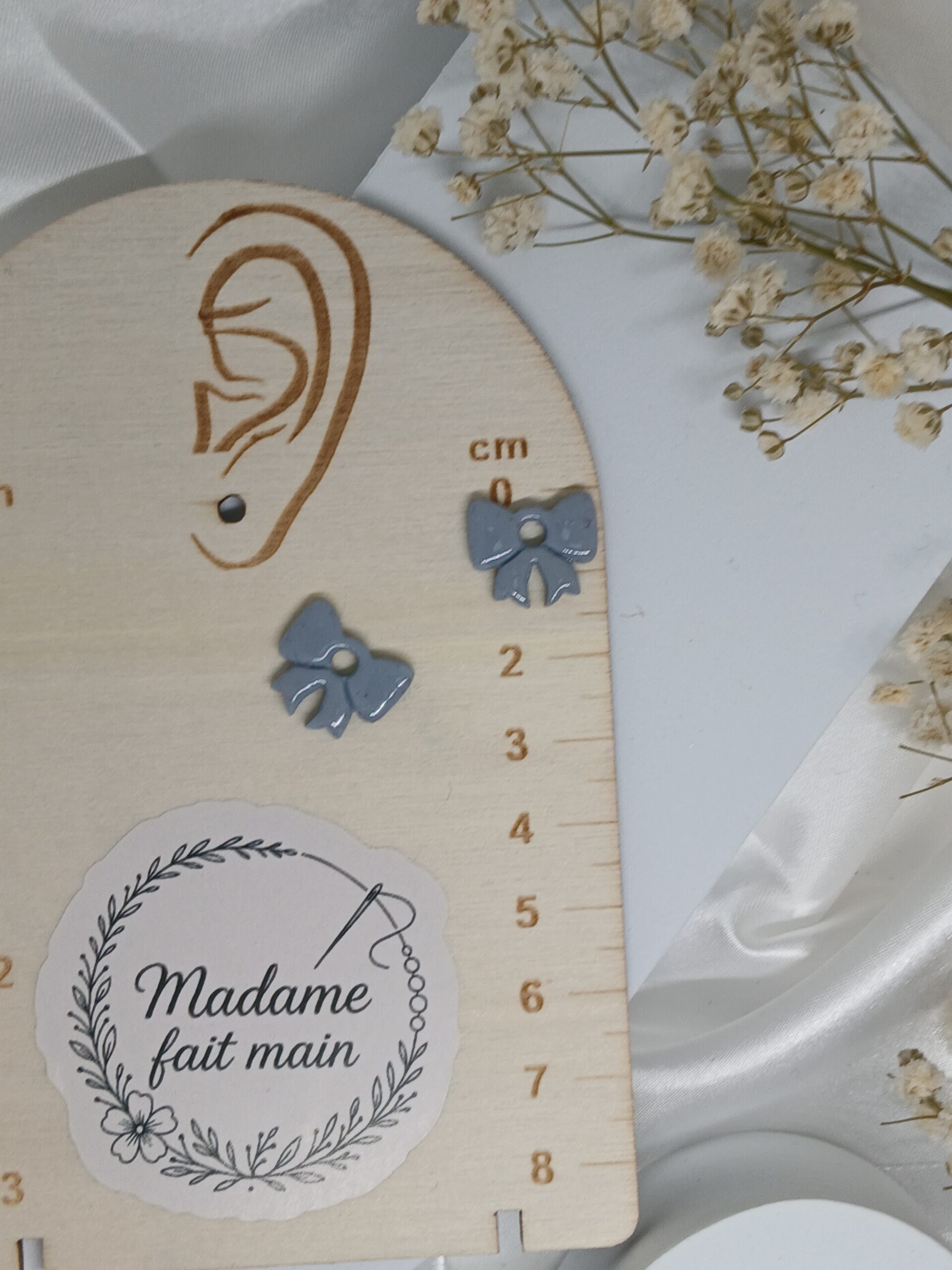 Pampilles interchangeables en pâte polymère pour créoles (anneaux, non fournis)/ mini noeuds/bleus