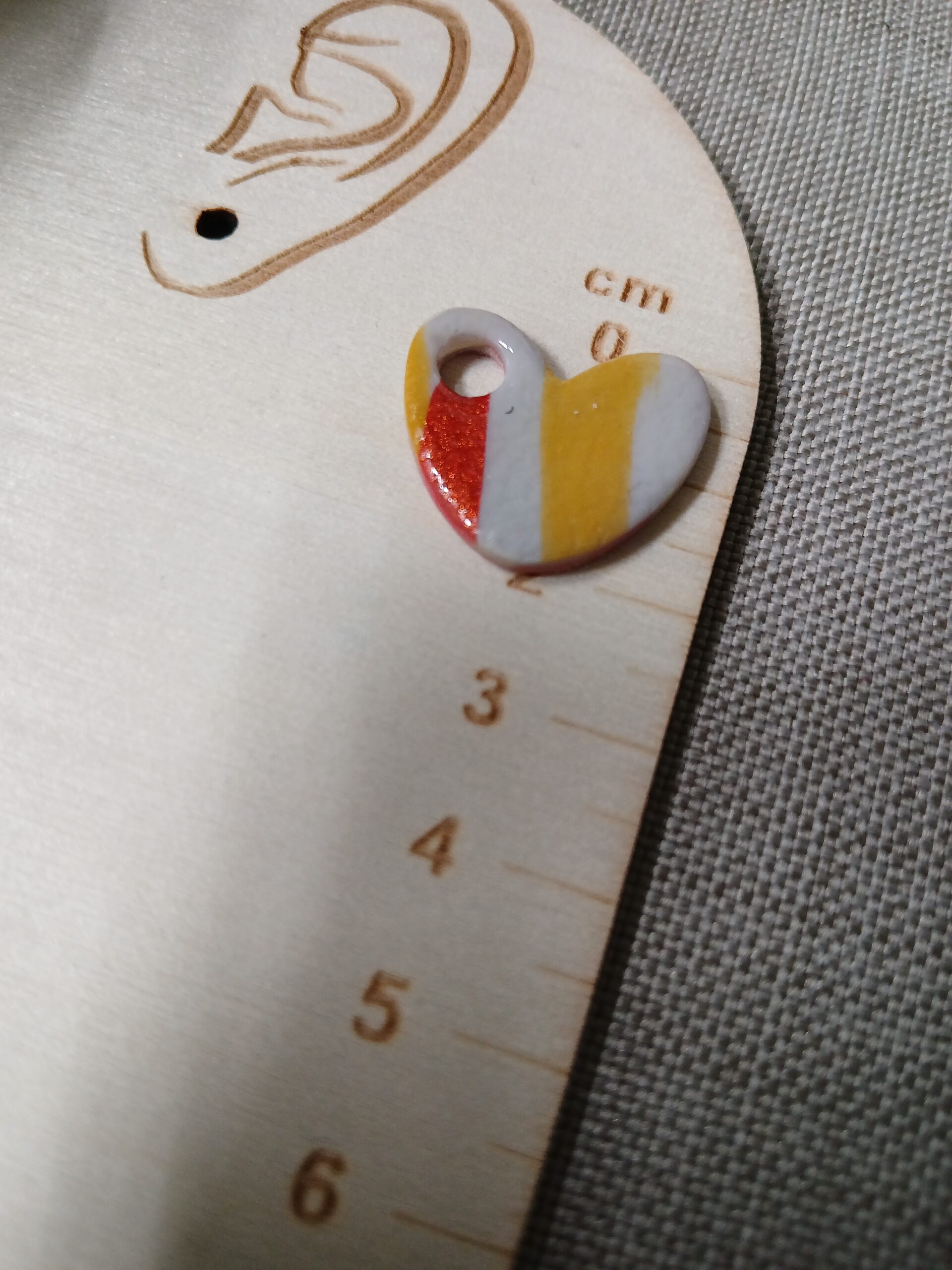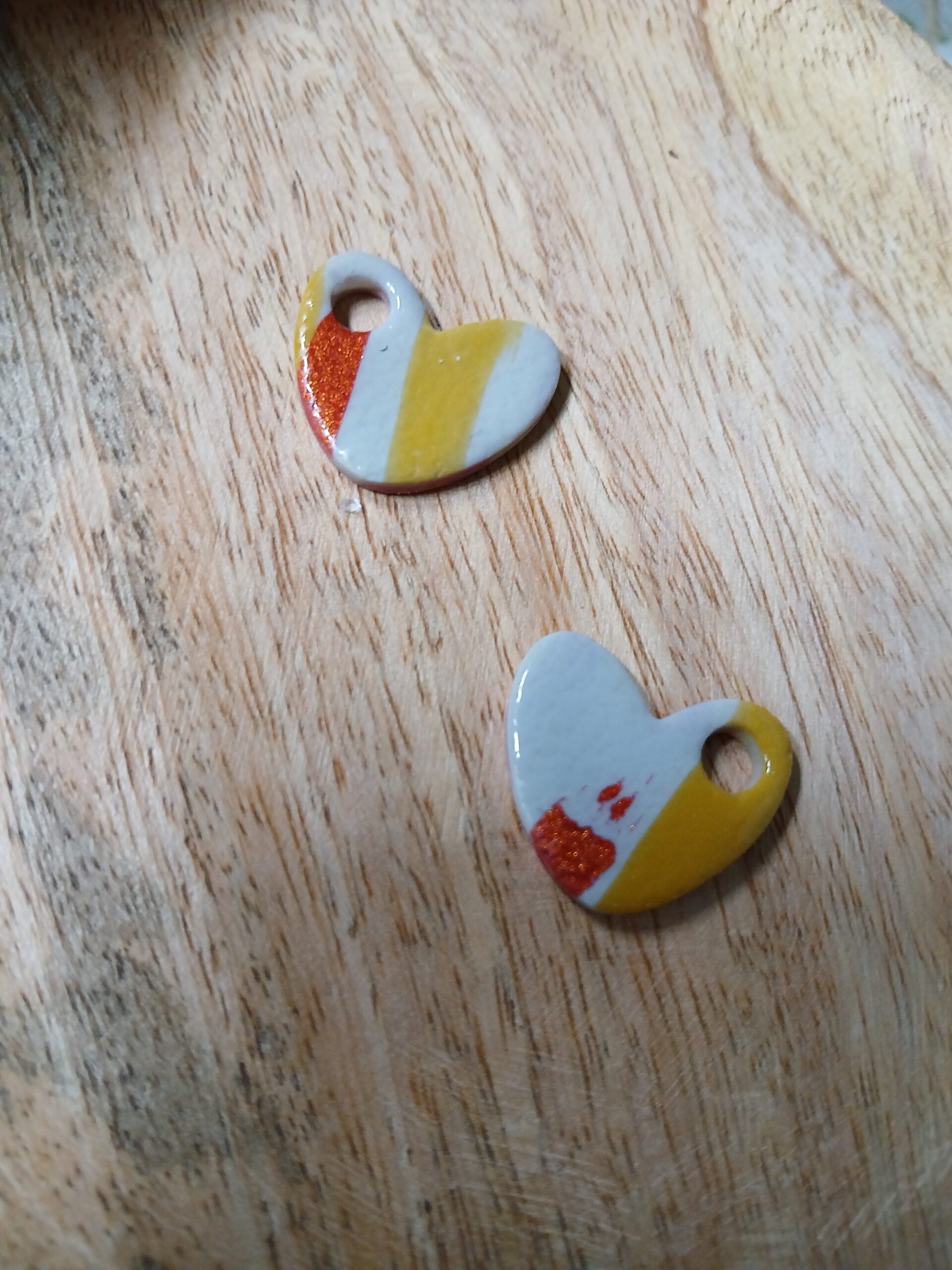 Pampilles interchangeables en pâte polymère pour créoles (anneaux, non fournis)/ coeurs rayés jaunes C1