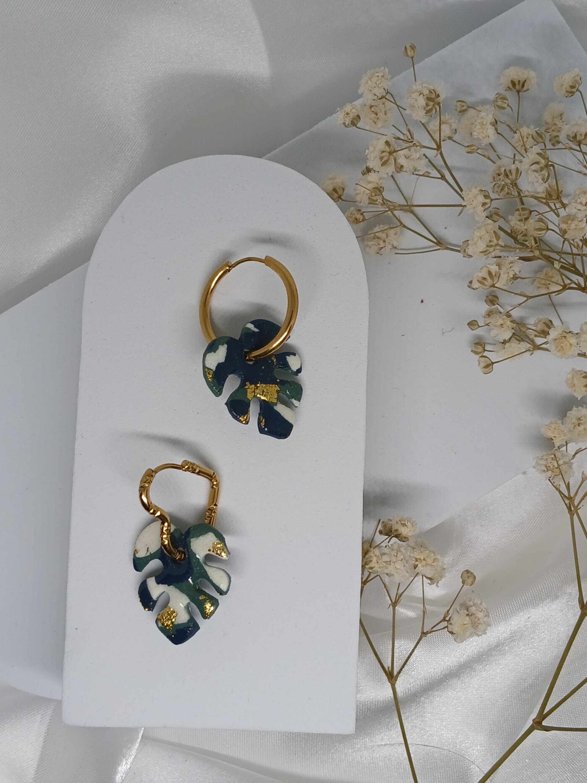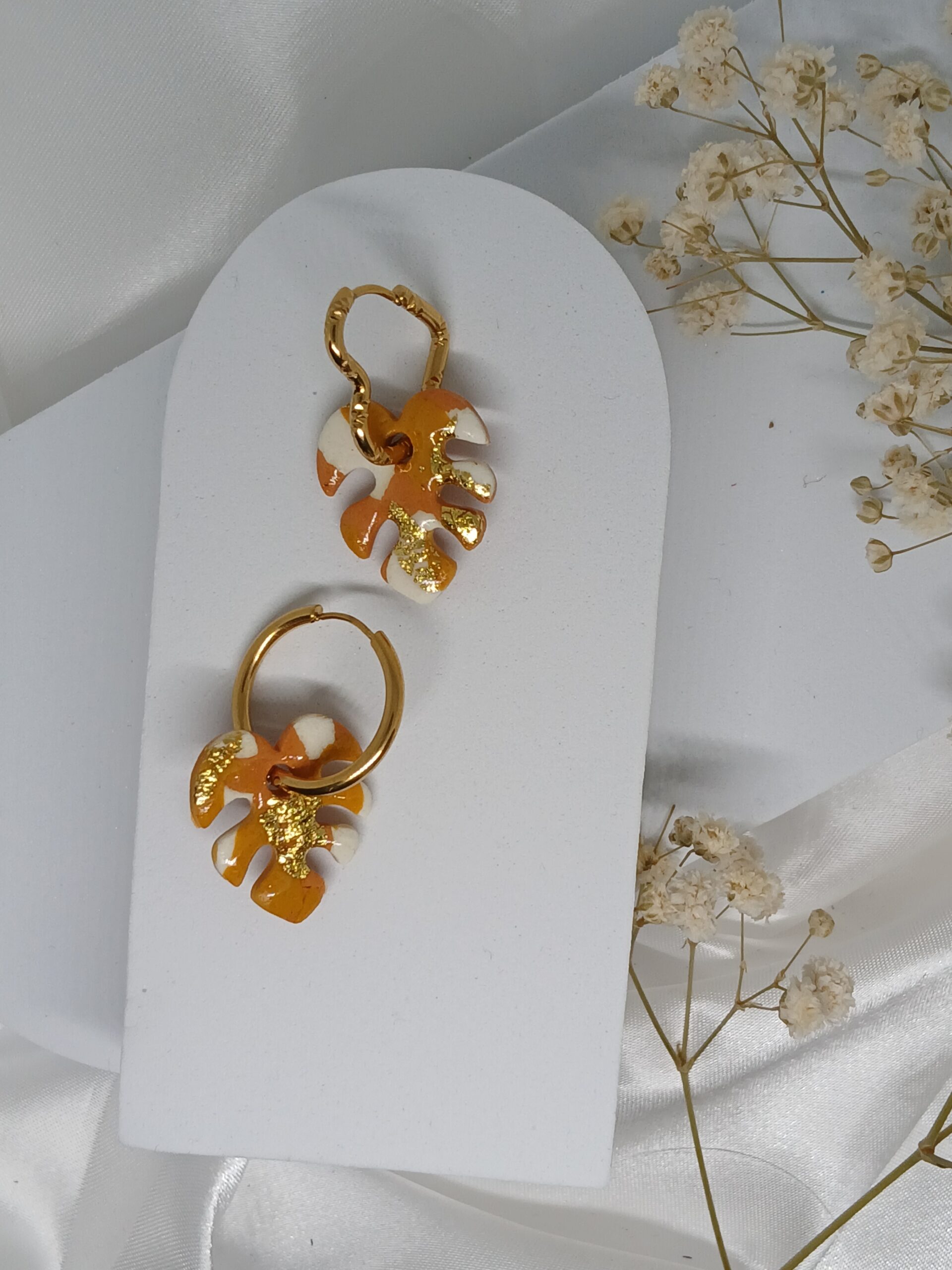 Boucles d’oreilles créoles acier inoxydable 304– Pampilles en pâte polymère faites main